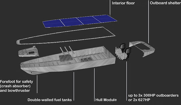 Design: Version 3 by Patrick Faulwetter Interior design: Version 2 by Patrick Faulwetter* AXUM test hull@78km/h (42kn) with extra payload of 6.5 t (= total weight of test: 10 t) The Platform for AXUM™ Superstructure The unique AXUM™ Hull Module